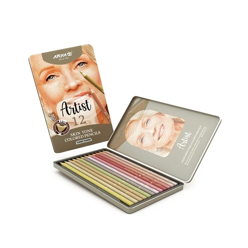مدادرنگی آریا آرتیست ست پوست روشن تناژ رنگی پوست مدادرنگی سطح مقطع گرد مغزی روغنی با محوشوندگی قابل قبول مناسب از مبتدی تا نیمه حرفه ای