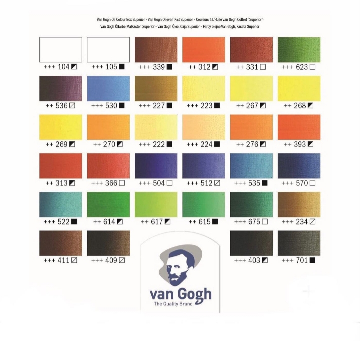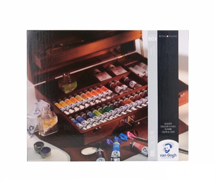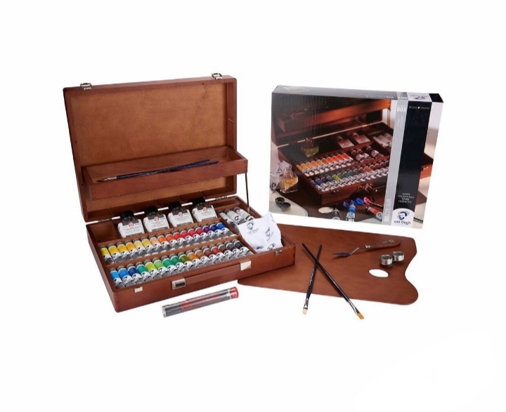 دارای ۳۴ رنگروغن،مدیوموایتاسپریت،پتینگمدیوم ۷۵ میل،ریتاچوارنیش ۷۵ میل،ورنی براق ۷۵ میل،مدیومپتینگ پیست ۶۰میل،۵عدد قلمو،۳ عدد زغال،کاردک..محصول تالنز هلند