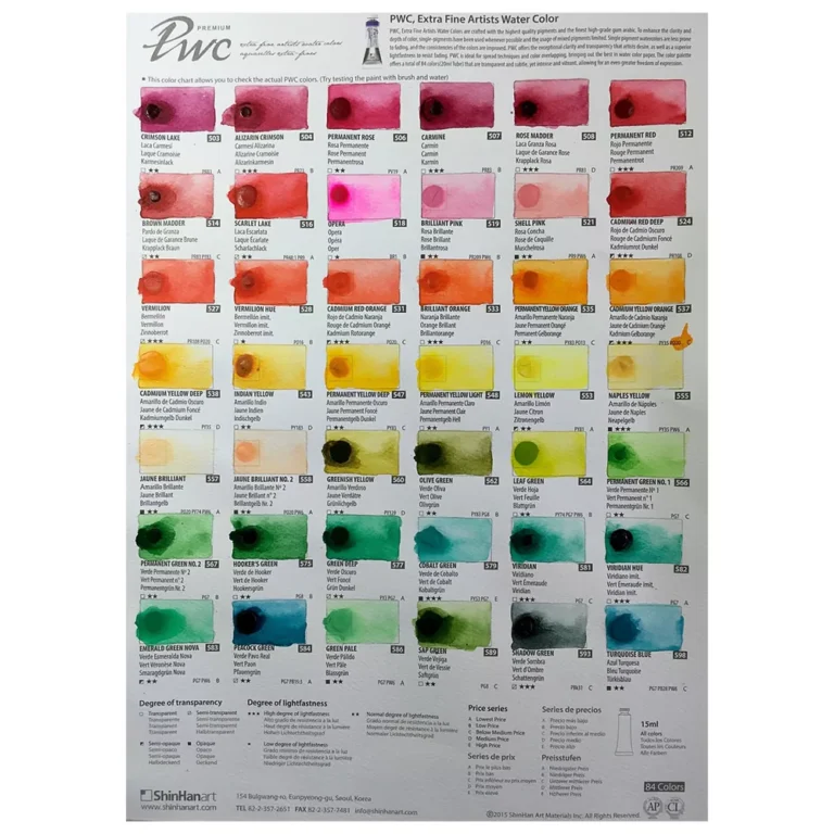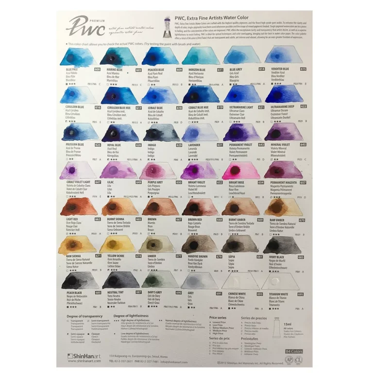 آبرنگ شین هان تک رنگ سری pwc آبرنگ فوق آرتیست شین هان با پیگمنت رنگی بسیار با کیفیت حجم 15 میل ساخت کره دارای همپوشانی رنگ با کیفیت ترکیب رنگ بسیار شفاف و زنده